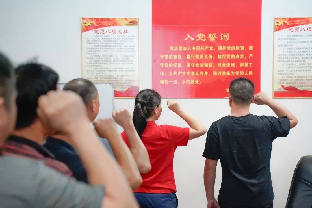 在入黨介紹人陳明同志的領(lǐng)誓下,李海燕同志及全體黨員宣讀了入黨誓詞。參會同志們?nèi)w站立,表情嚴肅眼神堅定,懷著為共產(chǎn)主義事業(yè)奮斗終身的信念,舉起右手莊嚴宣誓,錚錚誓言在大家耳邊縈繞,紅色種子在新黨員的心中悄悄埋下靜待發(fā)芽,黨的精神薪火相傳,生生不息。
