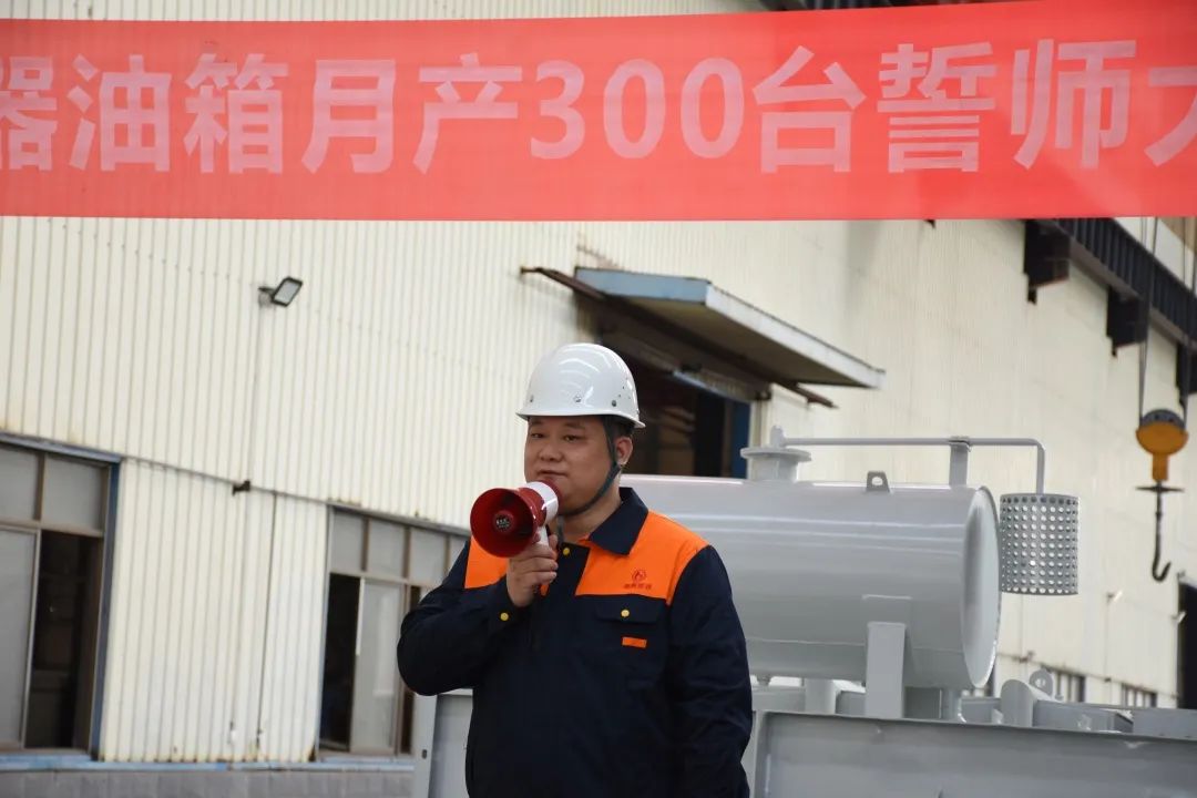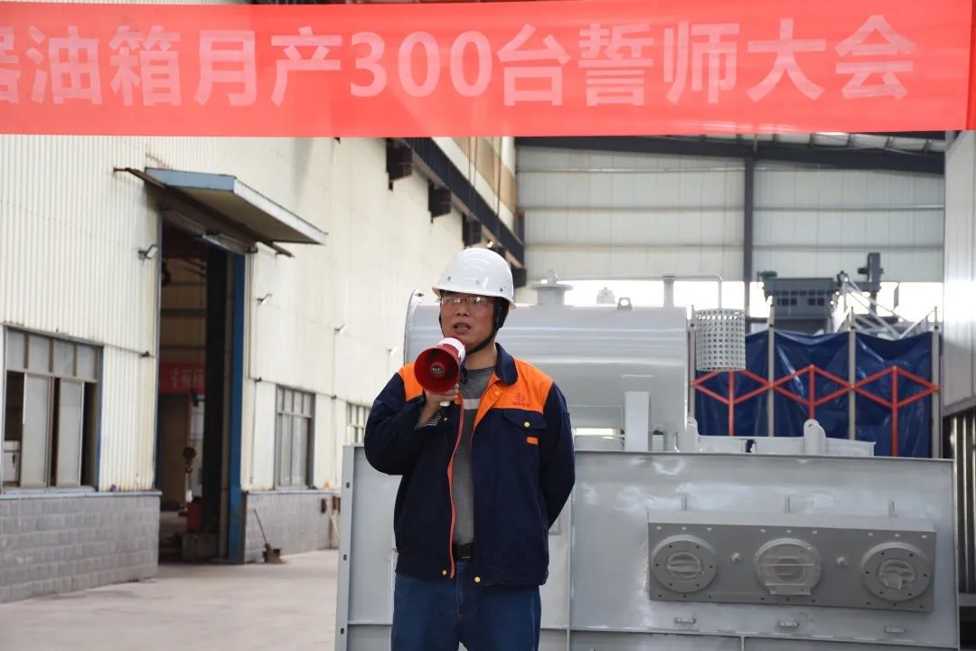 今天的宣誓在我們每個人的心中種下一個火種,將我們全體朝陽人團結一心、齊心協力、精益求精,不斷創(chuàng)新,不斷突破,服務好客戶,提升好自身。以做好明陽電器月供300臺變壓器油箱為起點,攻艱克難,持續(xù)追求卓越,不斷超越自我,做出一個客戶滿意、員工幸福、茁壯成長般“驕陽似火”的朝陽集團。
