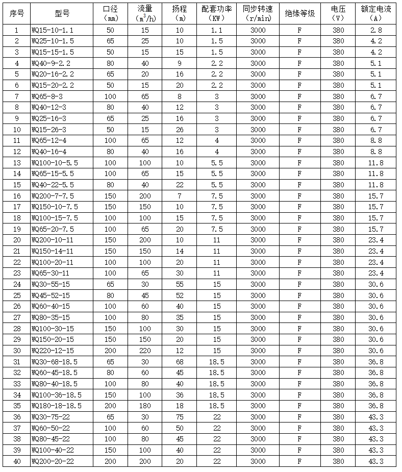 新一代WQ型污水泵除了具有無(wú)堵塞、防纏繞、節(jié)能效果優(yōu)良等特點(diǎn)外,公司自創(chuàng)的高精度泵體,雙流道的葉輪流道設(shè)計(jì),大幅度提高流道通過(guò)性能,在使用過(guò)程中,效率高,功率曲線(xiàn)平坦,不易過(guò)載。